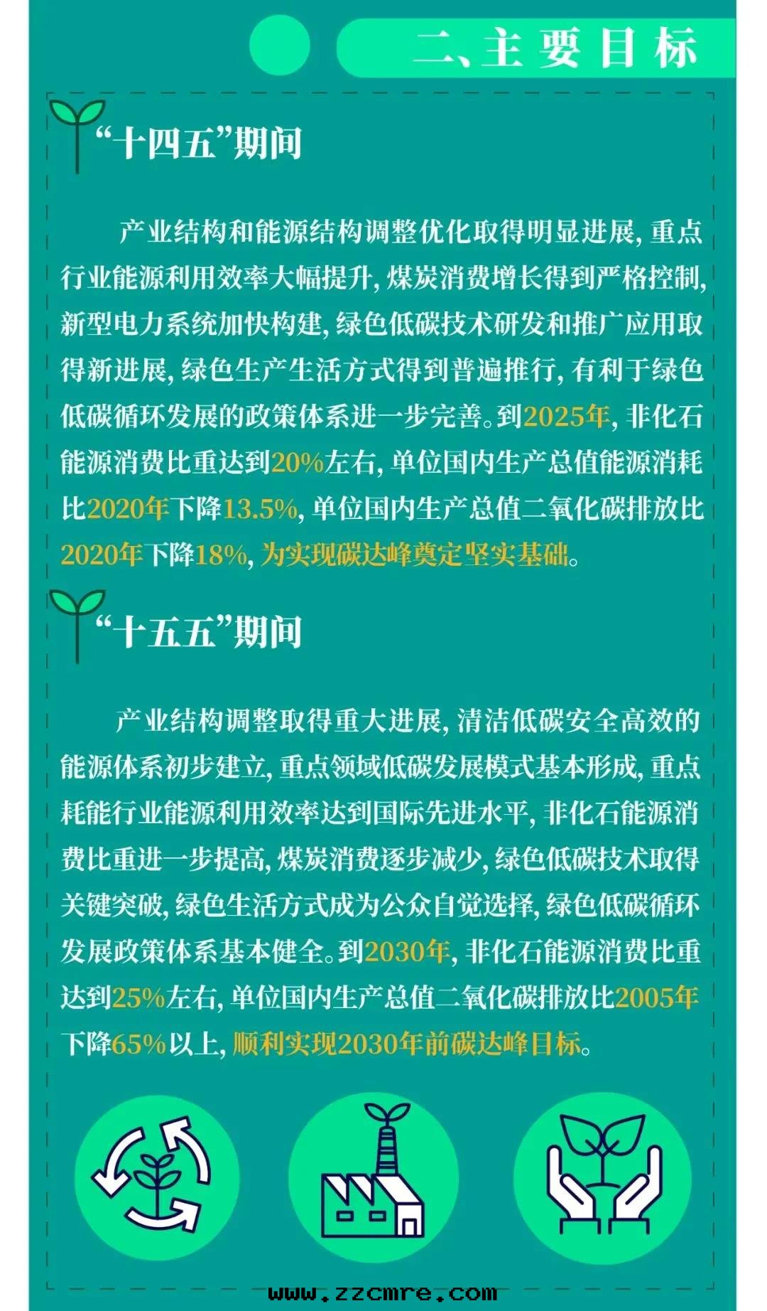 《方(fāng)案(àn)》聚焦“十(shí)四(sì)五(wǔ)”和(hé)“十(shí)五(wǔ)五(wǔ)”两(liǎng)个(gè)碳达(dá)峰(fēng)關(guān)键期(qī),提(tí)出(chū)了(le)提(tí)高(gāo)非(fēi)化(huà)石(dàn)能(néng)源消費比重(zhòng)、提(tí)升能(néng)源利用(yòng)效率、降低(dī)二(èr)氧化(huà)碳排放(fàng)水(shuǐ)平等方(fāng)面(miàn)主要(yào)目标(biāo)。